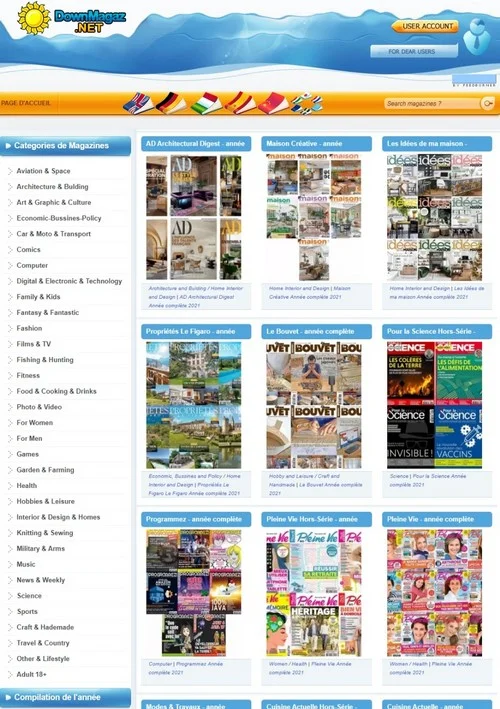 DownMagaz met à disposition un immense catalogue de magazines en téléchargement direct DDL. Cette large bibliothèque couvre des centaines de catégories et permet de récupérer rapidement les dernières parutions. Le site séduit par son interface intuitive et claire, pensée pour offrir une navigation fluide et un accès rapide aux contenus recherchés